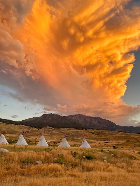 Sunset over the Yellowstone Revealed Lighted Teepees: Resiliency of the People by Pretty Shield Foundation and Rocky Mountain Tribal Leaders Council in collaboration with Mountain Time Arts in Gardiner, Montana. One part of the celebration of the historic and continued presence of Indigenous people in the Yellowstone region alongside Yellowstone’s 150th. Thank you sincerely, Mountain Time Arts. The teepees will be up through 8/27.
